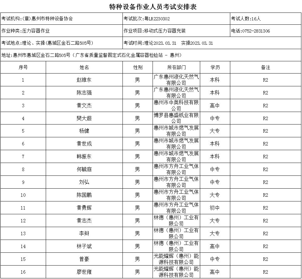 移动式压力容器充装(批次:粤LR2202412001)考试安排表