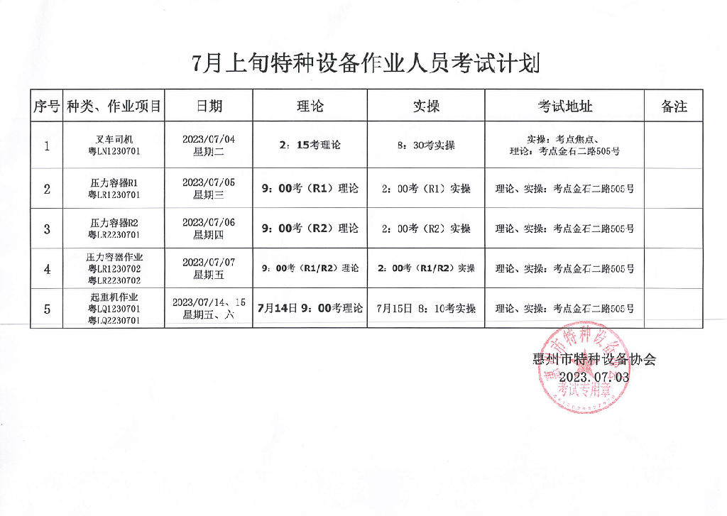 移动式压力容器充装(批次:粤LR2202412001)考试安排表