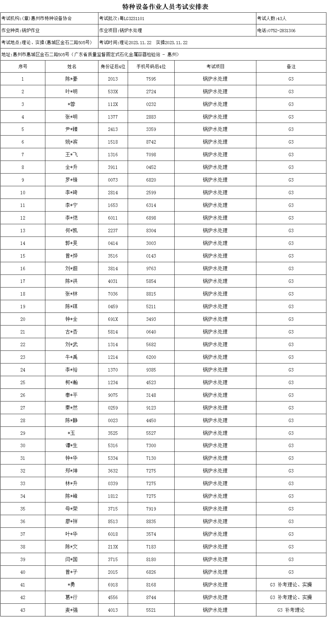 快开门式压力容器操作(批次:粤LR1202412001)考试安排表