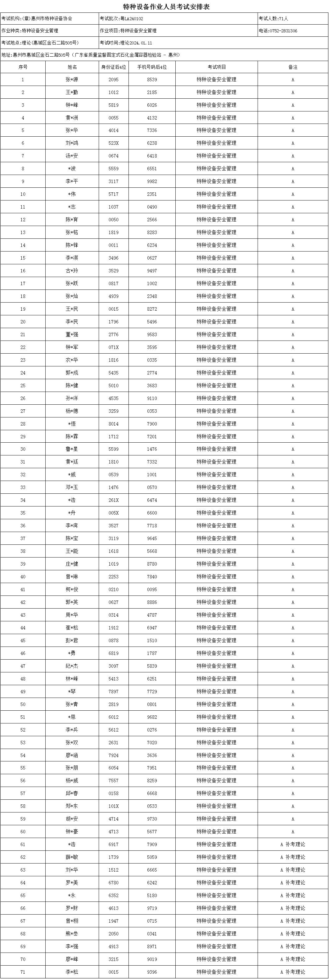 快开门式压力容器操作(批次:粤LR1202412001)考试安排表