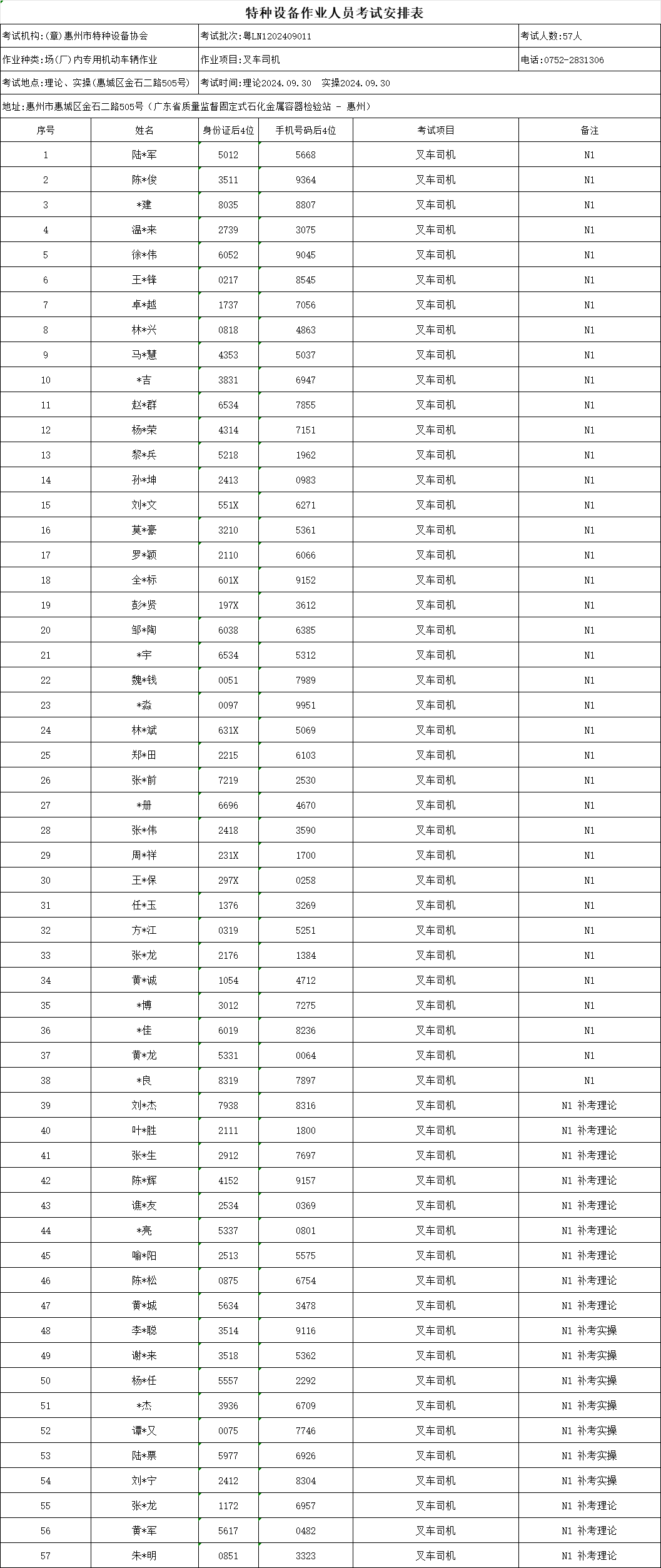 移动式压力容器充装(批次:粤LR2202412001)考试安排表