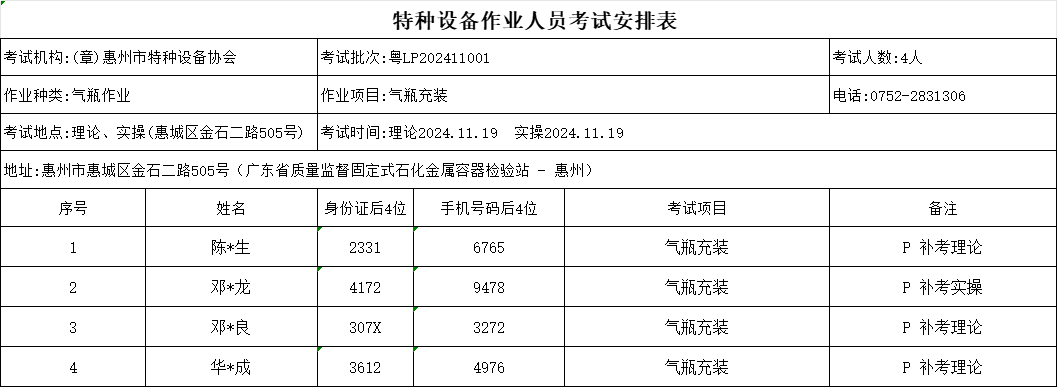 移动式压力容器充装(批次:粤LR2202412001)考试安排表