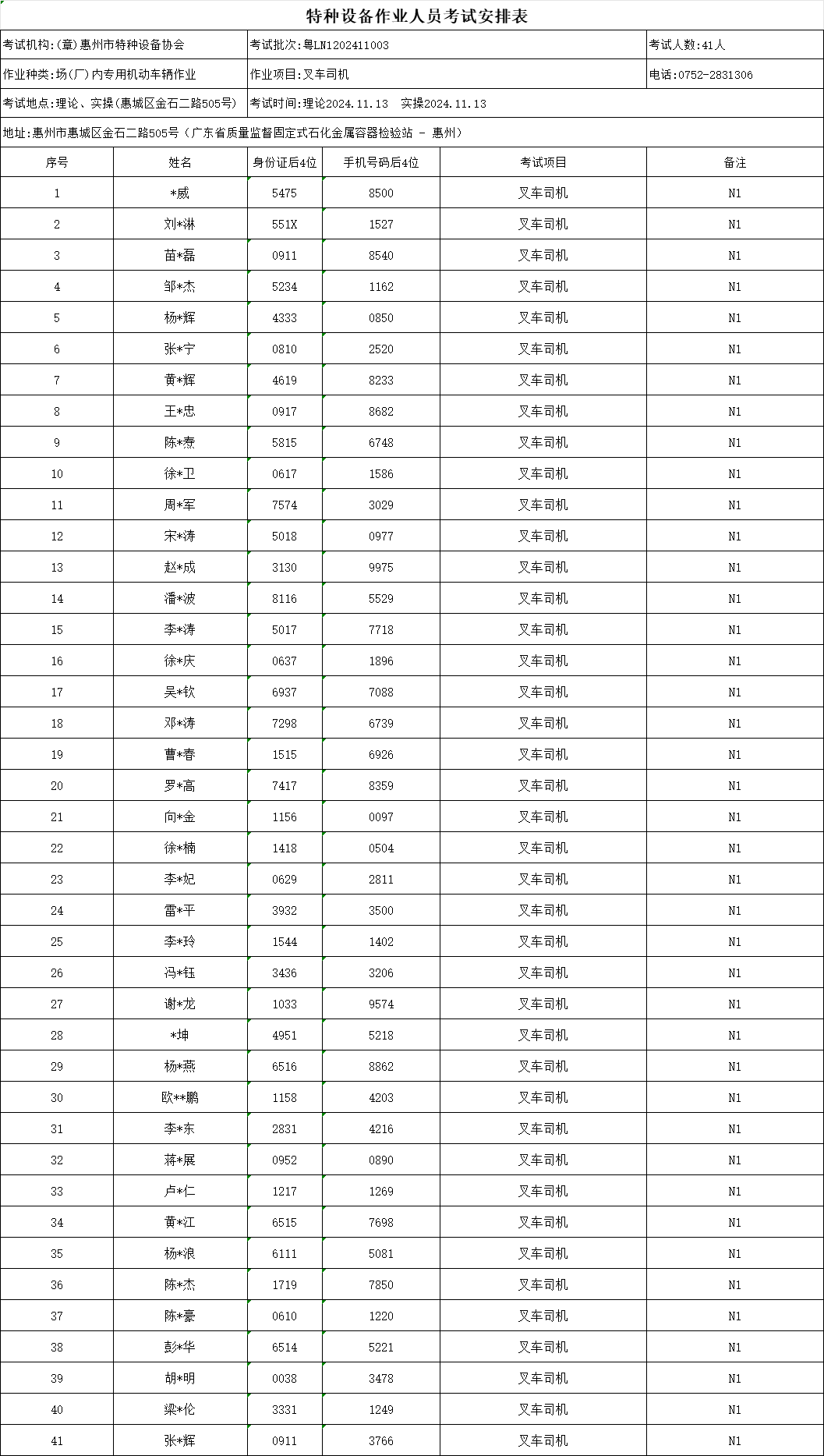 快开门式压力容器操作(批次:粤LR1202412001)考试安排表