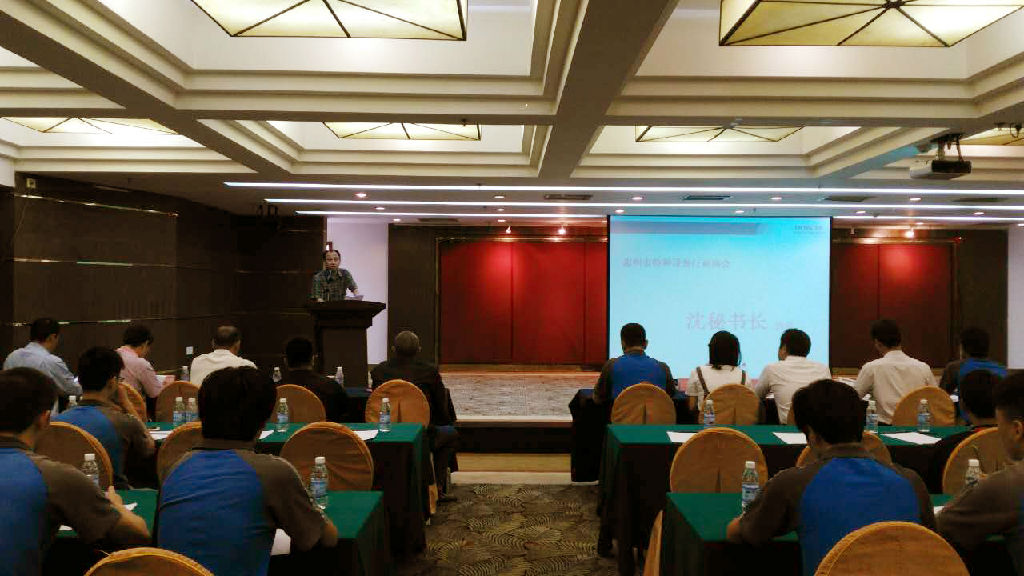 惠州市特种设备协会召开2017年年度电梯作业人员安全会议 2017年6月9日,惠州市特种设备协会召开2017年年度电梯作业人员安全会议,惠州检测院院长曾均长、协会秘书长沈桂龙、各电梯安装维保公司负责人、惠州电梯作业人员出席了本次会议。 会议上曾院长对目前惠州市电梯安全工作进行通报,肯定了惠州市电梯作业人员为惠州电梯安全运行做出的贡献,并希望所有电梯人要有安全意识,要遵守安全规章,切切实实做好电梯安全的各项工作。